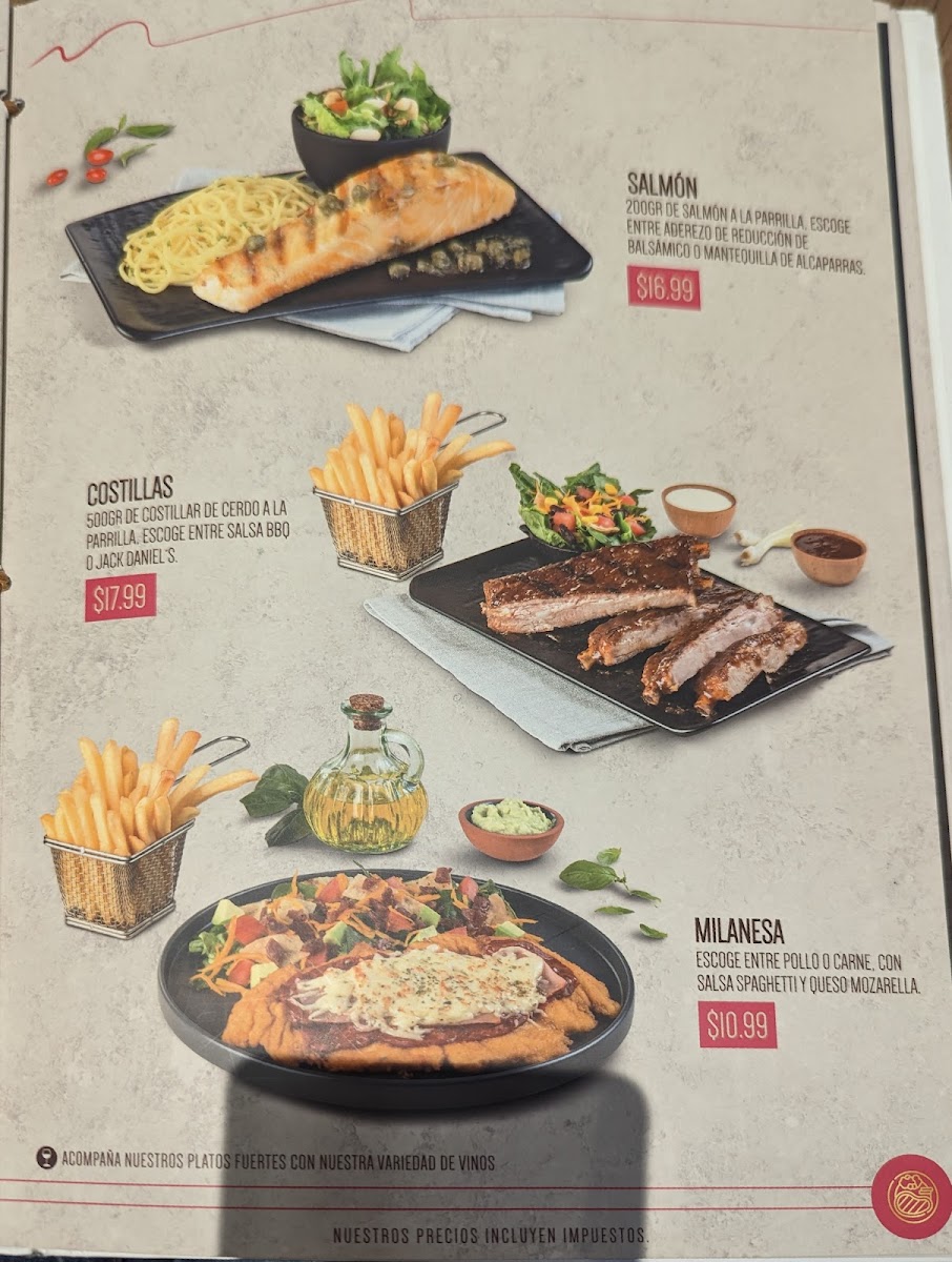 250 gr lomo fino, salsa champiñones o pimienta + 2 guarniciones.